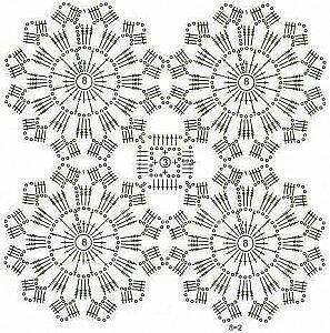 Diagram-diagram seperti ini jika dikait dan dicantumkan akan menghasilkan crochet yang cantik. Daripada diagram seperti ini akan dapat dihasilkan menjadi alas meja, alas almari, alas katil serta lainnya yang cantik mengikut warna benang yang disukai.